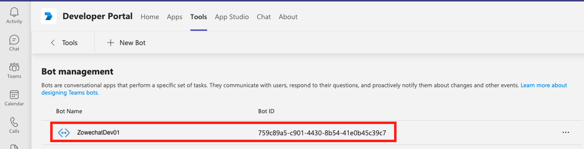 Click the Bot management. Choose the bot that you created and start editing your bot app.